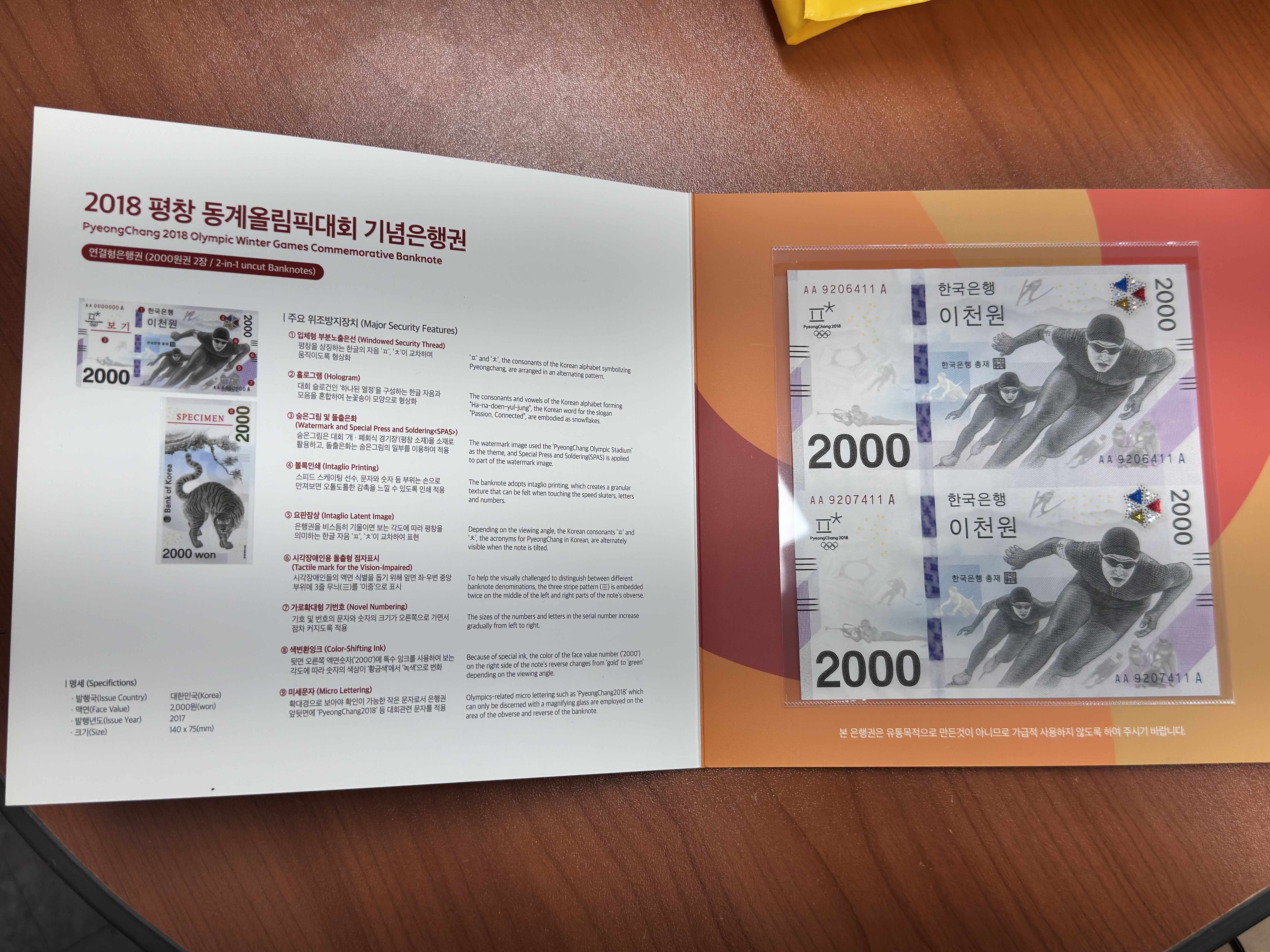 2018 평창 동계올림픽대회 기념은행권(2000원권 연결형)