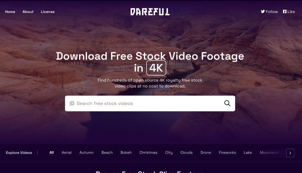 - 건축, 나무, 테크등 총 31가지 다양한 카테고리를 기반으로 무료 영상 소스를 제공한다.