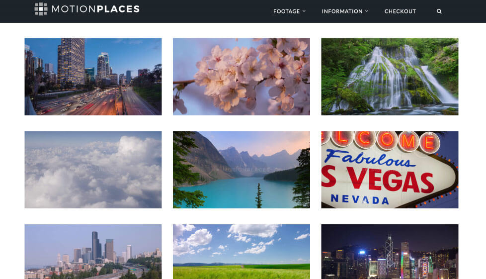 - 물, 오피스, 구름, 도시등 8가지 컬렉션을 통해 고퀄리티 영상들을 제공하고 있다.
