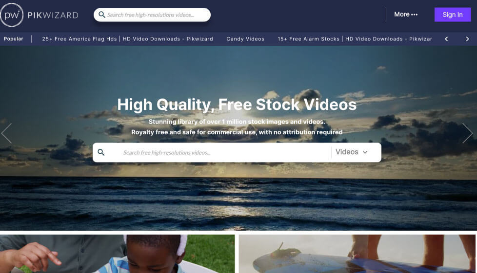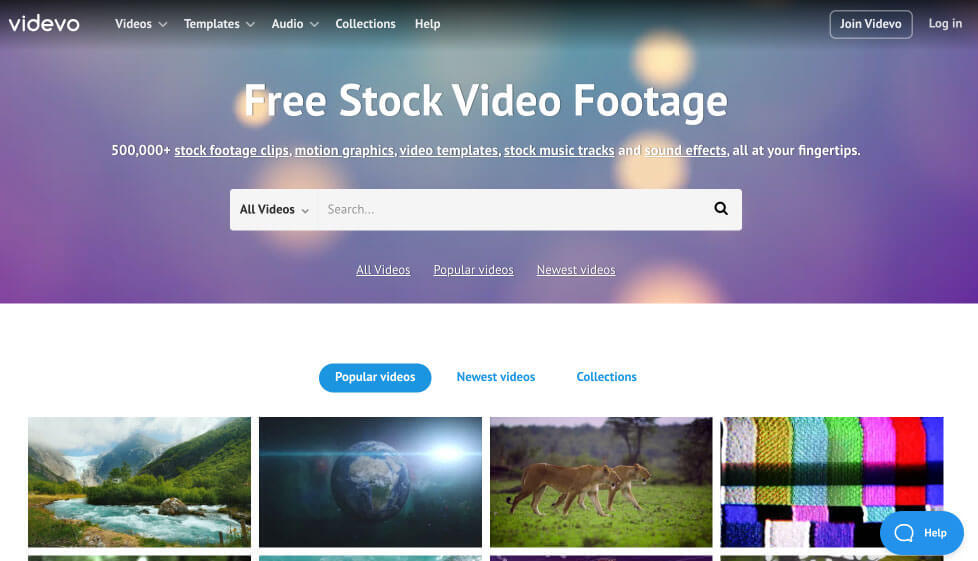 - 50만개가 넘는 다양한 영상 소스 뿐만 아니라 영상 편집에 도움이 되는 모션 그래픽, 무료 영상 템플릿 그리고 사운드 효과까지 제공하는 영상 편집 소스 사이트 중 하나다.